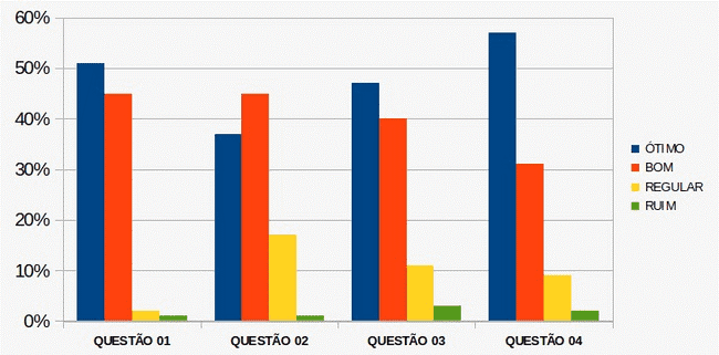 No gráfico inicial (Figura 7), mostramos um resumo dos resultados de um bloco com quatro perguntas das fases iniciais do projeto:
