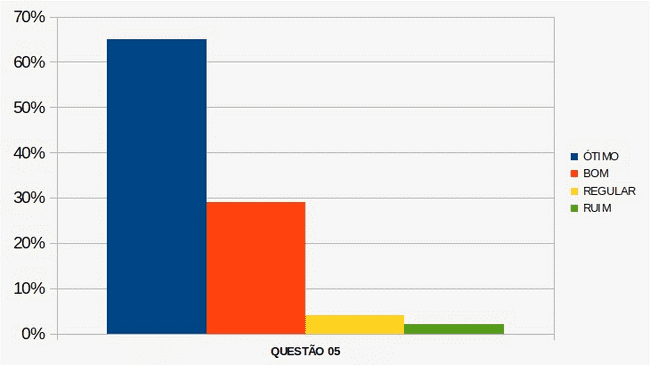 As quatro primeiras questões em nosso instrumento de avaliação abordaram a execução e o planejamento das ações realizadas durante o projeto Aviões de Papel. Somando as opções ótimo e bom, observamos uma média de aprovação de 85%, sendo que as aulas teóricas tiveram o menor índice, em torno de 80%. Apesar de termos escolhido questões fechadas, ouvimos alguns alunos comentando: “Prof. foi 10!”; “Ah, professor, quando vai ter de novo!”; “Você viu o meu avião? Voou longe!”; “Poderia ocorrer todos os meses esse torneio!”.
