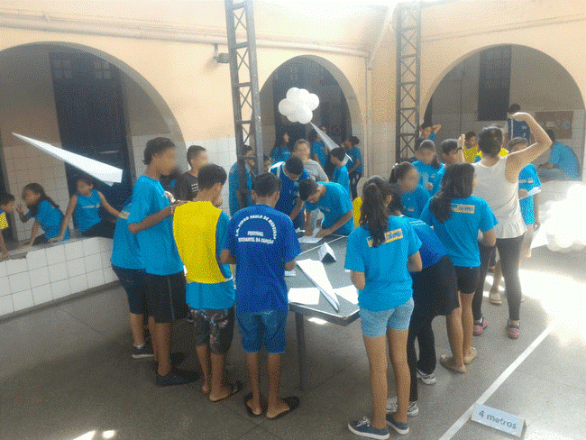 Assim, o Aviões de Papel utilizou uma brincadeira popular para divertir e discutir o conhecimento científico envolvido na preparação e no lançamento do aviãozinho. Isso culminou na organização de um Festival com aviões de papel entre os alunos do Ensino Fundamental II de uma escola pública em Corumbá, no Mato Grosso do Sul (MS).