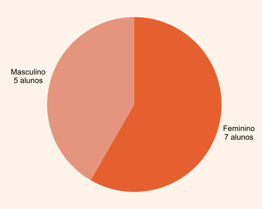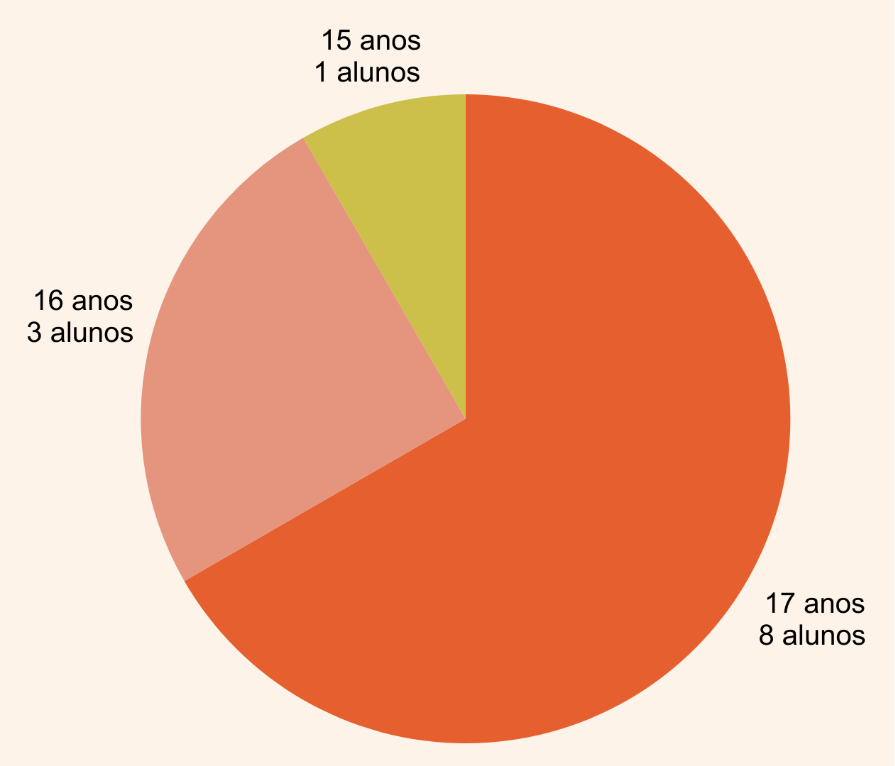 Como forma de caracterizar os alunos participantes da pesquisa, foram realizadas algumas perguntas, como idade e sexo. Dentre os participantes, 5 eram do sexo masculino e 7 do sexo feminino (Gráfico 1), encontrando-se na faixa etária entre 15 e 17 anos (Gráfico 2).
