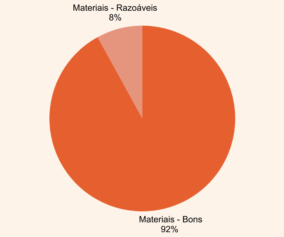 Ainda sob esse viés da precisão das abordagens metodológicas, dentre as opções bom, ruim e razoável, 92% dos alunos relataram que os materiais usados em sala de aula foram bons, e apenas 8% disseram que foram razoáveis (Gráfico 15).