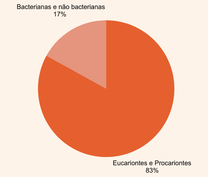 No pré-teste, quando indagados sobre as classes celulares, 83% responderam que as células podem ser classificadas em eucariontes e procariontes; por outro lado, 17% afirmaram que elas podem ser definidas como bacterianas e não bacterianas (Gráfico 6).