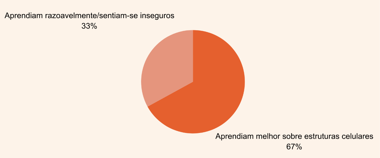 Ao comparar os dados, observa-se que as ações das intervenções teóricas e práticas auxiliaram os alunos no entendimento sobre células e organelas, permitindo-lhes o reconhecimento das diferentes estruturas e validando os objetivos propostos.