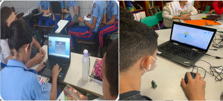 A prática aconteceu no Colégio da Polícia Militar Eraldo Tinoco no ano letivo de 2022, em que aplicamos uma tarefa digital elaborada pela professora tutora da turma, utilizando os recursos de animações gráficas do Tinkercad, disponível em: https://www.tinkercad.com. Nesse cenário, a possibilidade de descobrir a emoção de inventar, misturar, combinar, depurar e aprender oferece pressupostos básicos, como a ideia de que o estudante aprende fazendo, ou seja, a partir da manipulação e visualização de objetos e de atividades práticas.