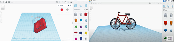 Após a realização da primeira etapa da tarefa, passou-se para a próxima orientação, que foi a construção do protótipo virtual, utilizando sólidos geométricos para projetar os itens selecionados pela turma. O recurso tecnológico manipulado nessa tarefa foi o Tinkercad, devido a isso, foi reservada uma aula de explanação sobre o acesso ao site do programa, o uso das principais ferramentas e figuras geométricas disponíveis.