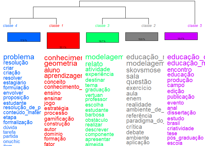 A análise da CHD identificou cinco classes de palavras que representaram temas significativos para a pesquisa: