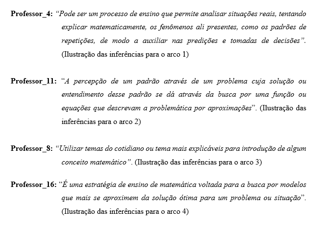 Ao analisar as respostas das questões discursivas, emergiram perspectivas variadas sobre a prática da modelagem. Um exemplo é o Professor 4 (Figura 8), que vê a modelagem como “um processo de ensino que permite analisar situações reais, tentando explicar matematicamente fenômenos como padrões de repetições, auxiliando nas predições e tomadas de decisões”. Essa visão reflete o entendimento de que a modelagem pode conectar a Matemática ao mundo real, promovendo uma educação mais contextualizada e relevante.
