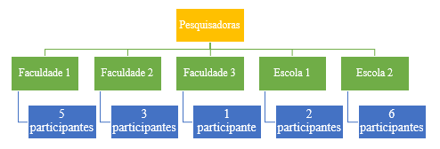Essas classes permitiram uma visão abrangente sobre as discussões centrais em torno da Modelagem Matemática, mostrando que sua aplicação vai além de resolver problemas matemáticos e possibilitando a delimitação dos temas abordados nas perguntas do questionário. O questionário desenvolvido complementou a análise com dados diretos dos professores. Ele foi composto por 16 perguntas (14 objetivas e 2 discursivas), estruturadas para captar desde o perfil dos participantes até sua experiência com a Modelagem Matemática (MM). A técnica de amostragem snowball foi utilizada para recrutar participantes a partir de grupos de contato das pesquisadoras, obtendo-se um total de 17 professores (Figura 7).
