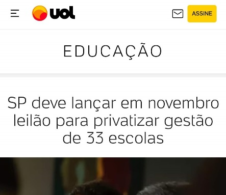 Essa desvalorização simbólica que, conforme vimos, suprime a identidade da função docente e anula o sentimento de pertencimento a uma classe profissional vem pavimentando o caminho da privatização da educação pública, que, no estado de São Paulo, já caminha em passos largos, rápidos e firmes. O lead de uma notícia publicada em 12 de abril de 2024 pelo site UOL comprova isso: