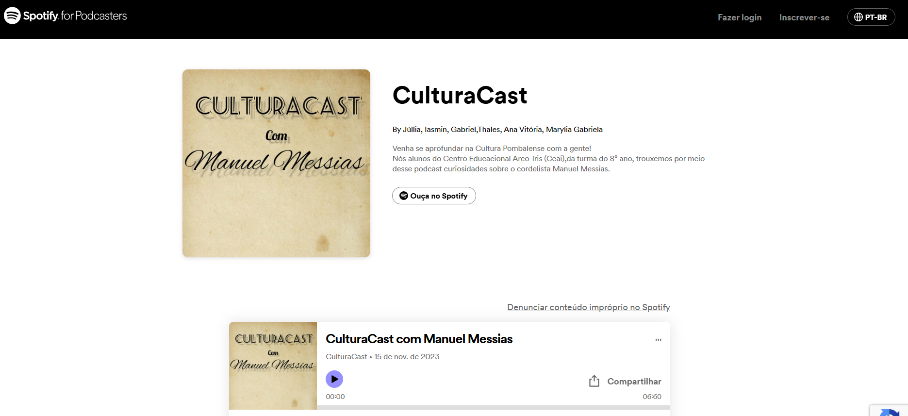 É preciso trazer a lume que as demais produções dos(as) estudantes da turma se encontram hospedadas no Spotify, podendo ser acessadas por qualquer pessoa que deseje conhecer a trajetória de tais escritores(as), bem como suas relações com a escrita.