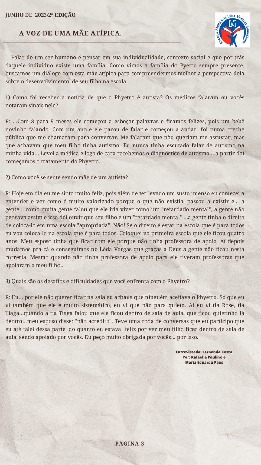 Os temas das matérias surgiam a partir de situações vividas, de curiosidades e inquietações das crianças. Ao longo do ano, escreveram sobre racismo, maternidade, autismo, condições estruturais da escola, serviços públicos do bairro e acontecimentos nacionais. A escrita se tornou lugar de pensamento e posicionamento.