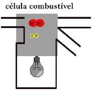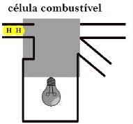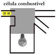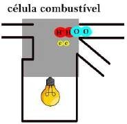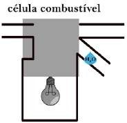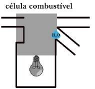 Na Figura 29, foi desenvolvida uma simulação animada que reproduz uma célula combustível de hidrogênio (H2); na sequência, o hidrogênio penetra na célula (A) e libera 2 elétrons (B), que fornecem a energia para a lâmpada acender (C) e, combinados ao oxigênio do ar, que penetra pela outra passagem, formam uma molécula de água (H2O) que escorre pela canaleta (D-E) até que o ciclo recomeça (F).