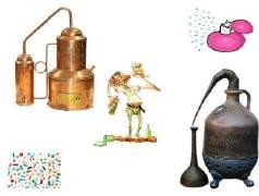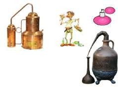 A Figura 11 ilustra exemplos de produtos químicos fabricados na Idade Média: perfumes (A), bebidas alcoólicas (B) e medicamentos (C).
