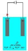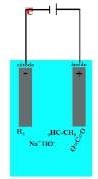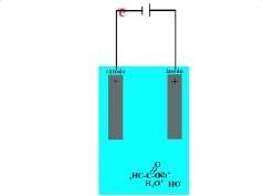 A Figura 21 mostra uma simulação animada de uma pilha em solução aquosa de acetato de sódio (CH3CH2CONa) em meio ácido (H3O+), reproduzindo a passagem do elétron do catodo para o anodo (A-C) e a formação de H2 (hidrogênio) no catodo, CO2 (gás carbônico) e CH3CH3 no anodo e NaOH (hidróxido de sódio) em solução aquosa (C-F).