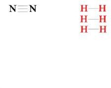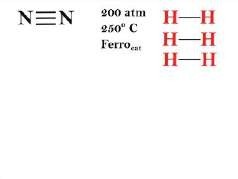 Figura 23: Síntese da amônia a partir do Nitrogênio (N2) e Hidrogênio (H2) realizada em condições de alta temperatura (250oC) e pressão (200 atm) e catalisada por Ferro (Fe)