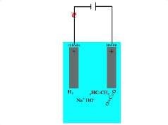 Figura 21: Reprodução de uma pilha e os produtos da reação do acetato de sódio (CH3CH2CONa) em meio ácido (H3O+)