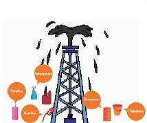 Na Figura 24 foi ilustrada uma animação com um poço de petróleo (A) que ejeta alguns de seus produtos desenvolvidos a partir do óleo cru: parafina (B), gasolina (C), querosene (D), detergentes e polietileno (E-F), pneumáticos (G-H) e lubrificantes (I-J), entre outros.