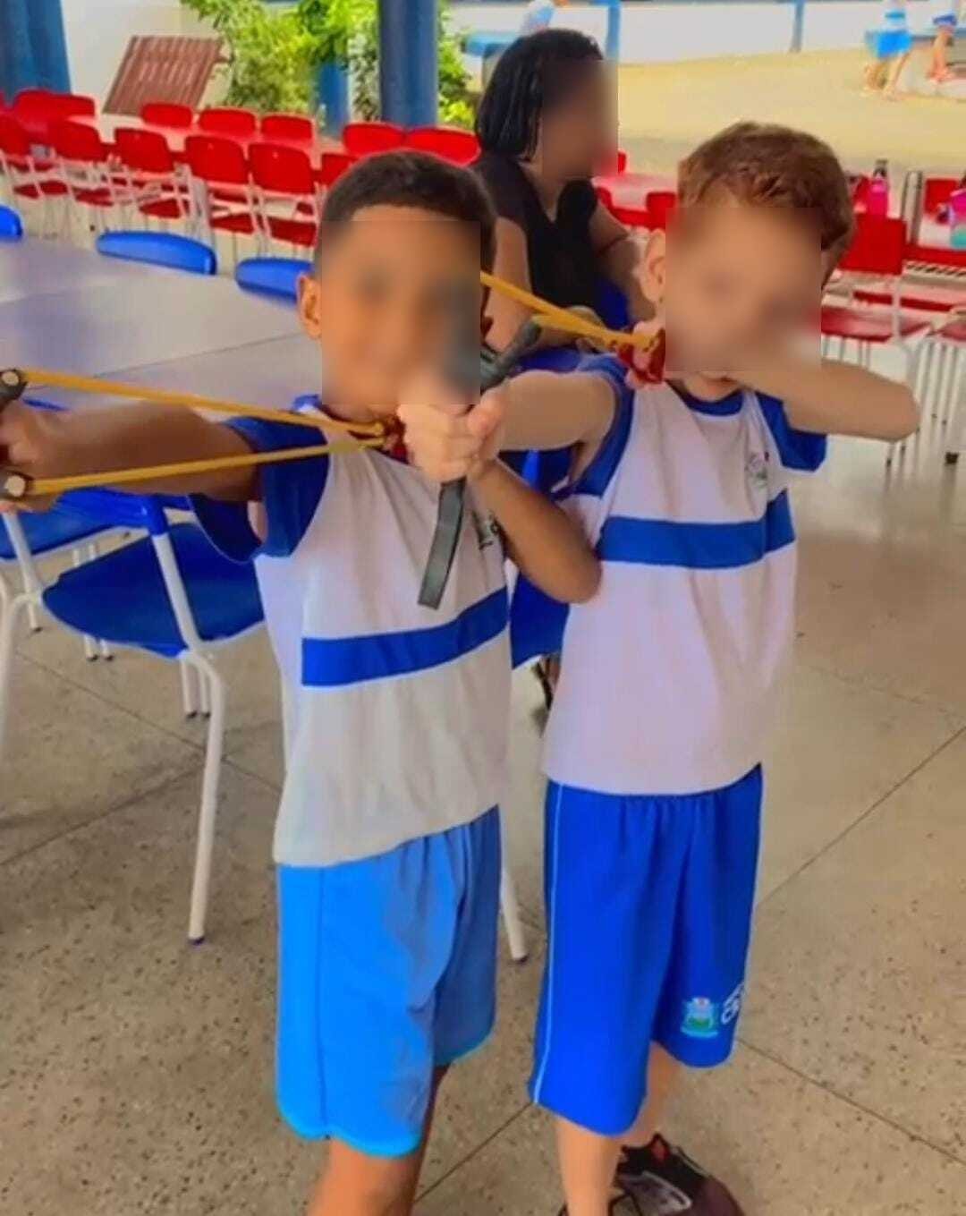 Figura 2: Alunos experimentando o brinquedo “baladeira” no pátio da escola; Crato/CE, 2024