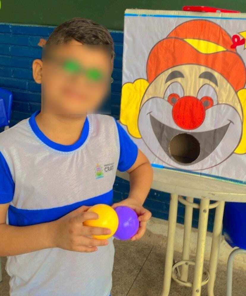 Na primeira aula, os alunos conheceram a brincadeira Acerte a boca do palhaço. Sob orientação da professora de Artes, construíram o brinquedo utilizando caixas de papelão, folhas e pincéis. Em seguida, foram conduzidos ao pátio, onde participaram da atividade: acertar a “boca do palhaço” com bolas de tamanhos diferentes, ajustando distâncias, posições e utilizando ambas as mãos. A Figura 1 mostra essa prática.